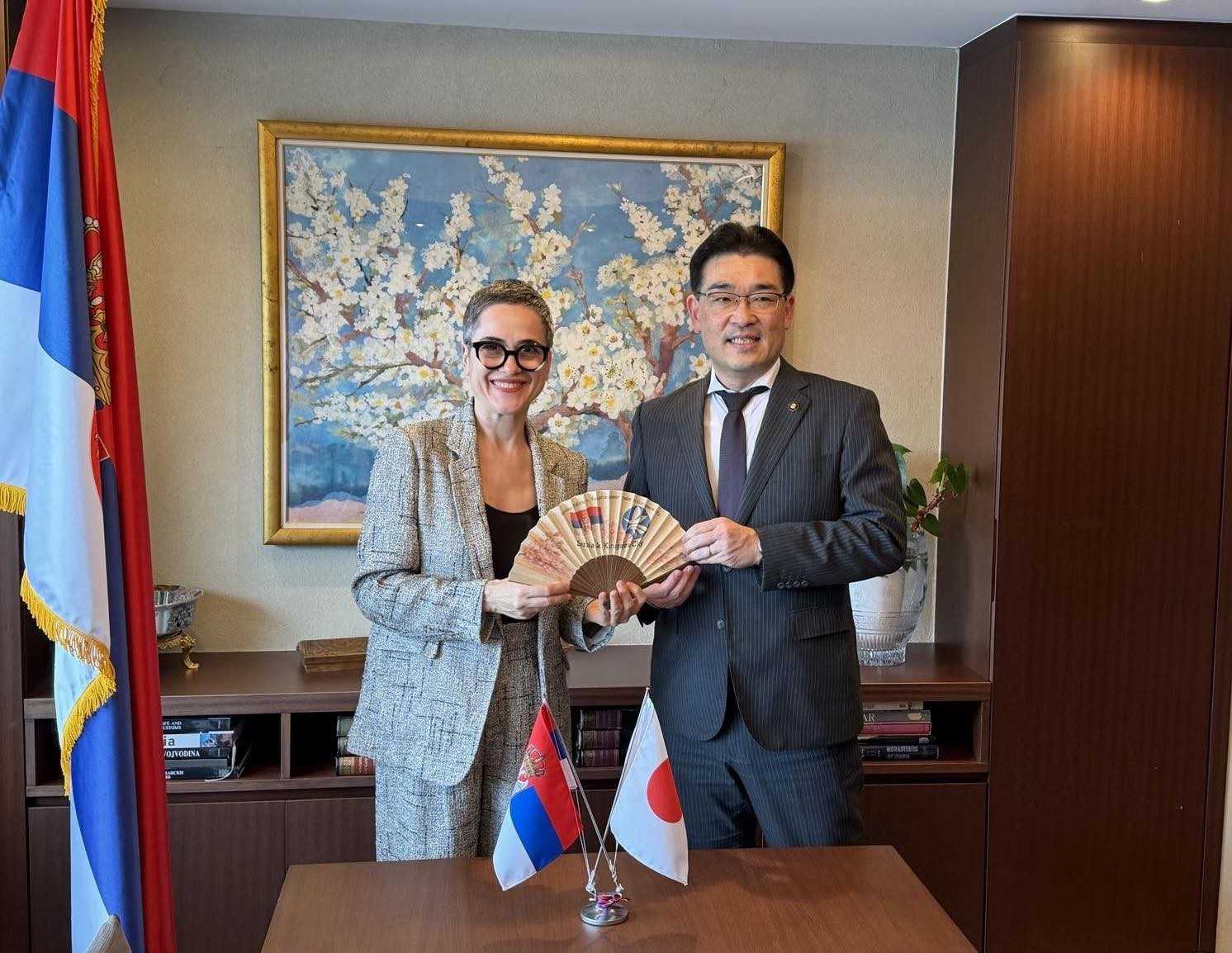 Амбасадорка Ковач је изразила задовољство посетом делегације Кизугаве, и указала на значај успешног учешћа Србије на Светској изложби у Осаки, путем јачања политичког дијалога, реализације посета највишег и високог нивоа, економске и друге промоције Србије и повезивања људи. Оценила је да су, захваљујући нашем учешћу, ојачане везе и са локалним заједницама, чему свакако доприноси донирање биљака из нашег Павиљона. Изнела је спремност да са градом Кизугава наставимо да развијамо односе пријатељства, као и да га посетимо, како бисмо грађанима што боље представили нашу земљу. Саговорнике је упознала са обележавањем 145 година пријатељства наше две земље и народа 2027. године, као и учешћем Јапана на Специјализованој изложби Експо у Београду, али и Србије на Међународној изложби хортикултуре у Јокохами. Оба догађаја ће бити одлична прилика да се грађани Кизугаве упознају са Србијом и њеном културом.