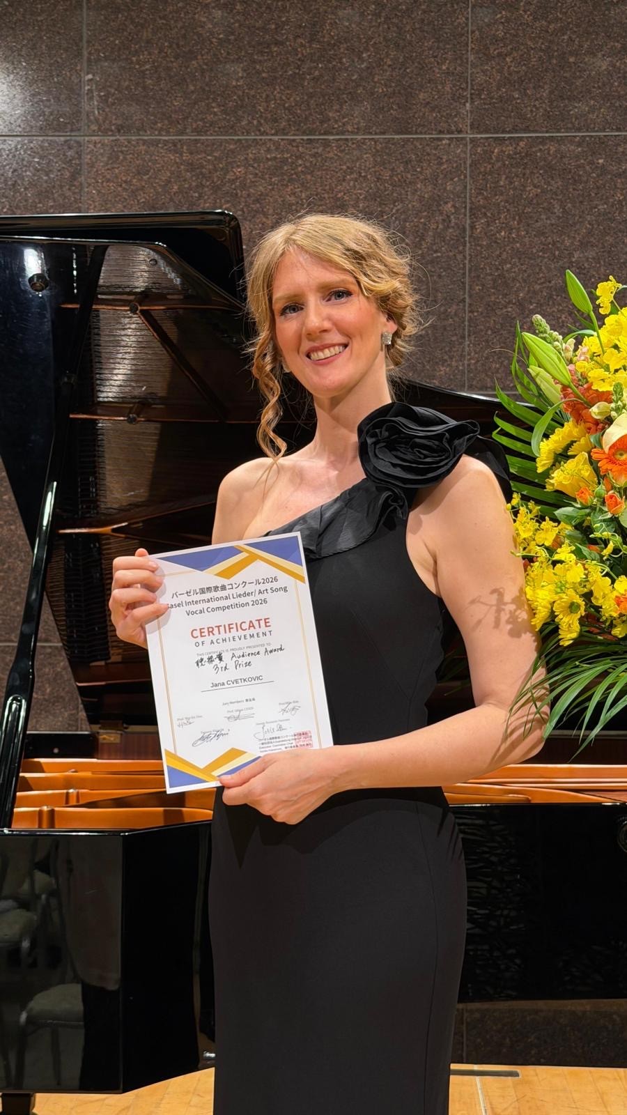 Финале Међународног такмичења соло песме „Базел 2026“ одржано је 18. априла 2026. године у Токију, уз учешће млађих уметника из више земаља света, међу којима је Србију представила Јана Цветковић, мастер музичких уметности – оперска певачица и вокална солисткиња, која се активно усавршава у области соло певања и наступа на домаћој и међународној сцени.